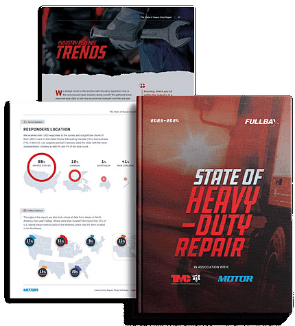 SOHDR, produced by Fullbay, in partnership with American Trucking Associations’ Technology & Maintenance Council (TMC) and MOTOR, is based on a survey of 1,000 professionals in the freight, logistics and repair industries. Results were augmented with app data from 3,500-plus shops using Fullbay.